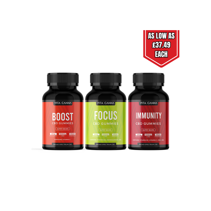 Vita Canna's Broad Spectrum 1500mg CBD Vegan Gummy Bears are crafted to provide a delicious and convenient way to incorporate CBD into your daily life. These gummies combine the benefits of CBD with Vitamin D3 and Ashwagandha, offering a holistic approach to wellness. They are specially tailored for modern life, unifying high-quality CBD with a vegan-friendly recipe.